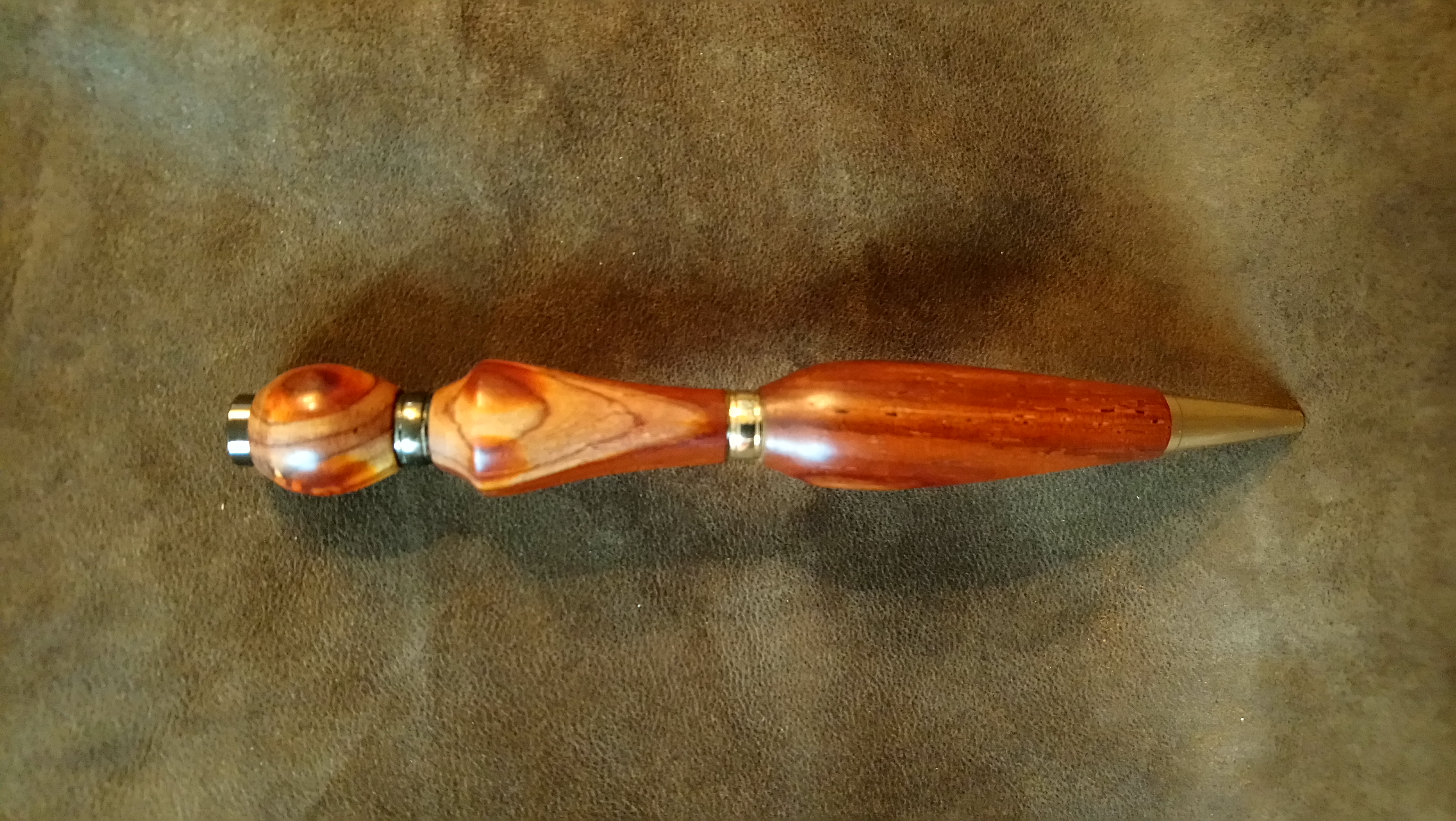 Je vous propose de découvrir mes premiers essais de tournage de stylos en bois. Pour ces premières pièces j’ai utilisé des kits de stylos billes et kits de porte-mines. Ces kits sont proposés souvent dans divers placage (Or, Chrome et « gun metal »). Pour le choix du bois j’ai opté ici pour des carrelets en Amarante, Olivier, Ébène et bubinga. L’ensemble des finitions sont réalisées à l’huile dure aprés un ponçage fin et minutieux. Bon visionnage
