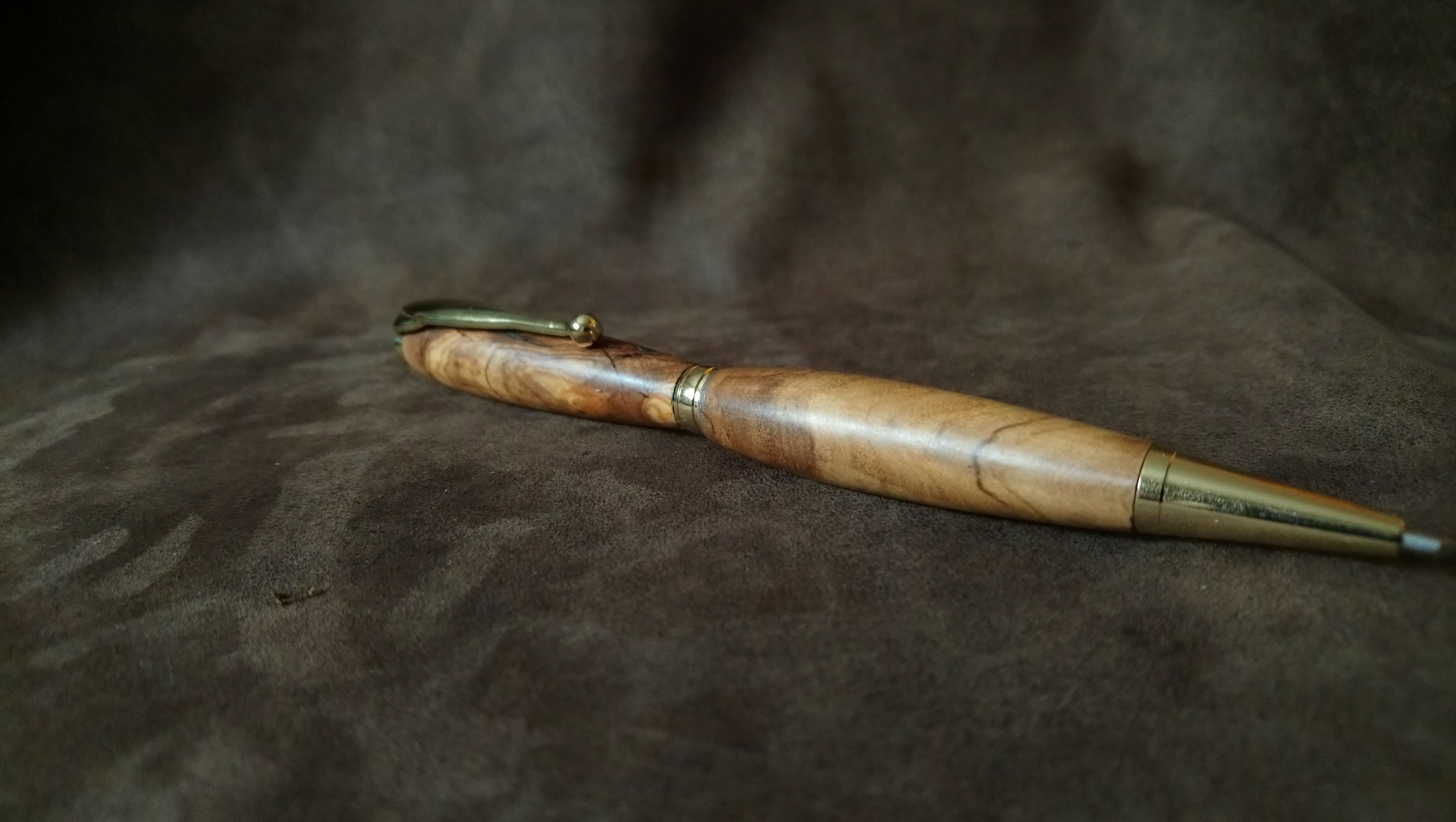 Travail sur l’alliance de deux essences avec cette bague alliant bois d’Olivier et Buis. L’accent est mis sur le morceau de racine d’olivier qui comporte de nombreux et spectaculaires motifs aux formes tortueuses.